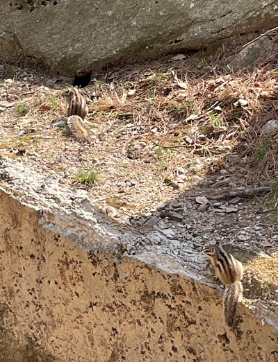 내려오는 길에 다람쥐를 만났다. 아주 작은 아기다람쥐 두 마리였는데, 어려서 잘 도망치지 못하는 녀석을 내가 포착하여 손으로 만져봤다. 다람쥐가 얼마나 놀랐을까... 아기다람쥐에게 트라우마 생겼을지도 ㅠㅠ 미안해