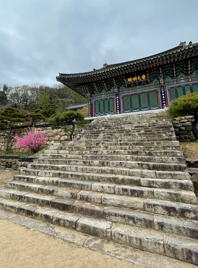 허나! (사극 톤;;) 가장 신비로웠던 것은 윤장대였다. 조각으로 화려하게 장식한 목조 기둥에 경전함을 두고, 경전함 기둥 아래위를 아예 건물을 지을 때부터 천정과 바닥에 함께 설치해 돌아가게 한 것이다. 그래서 이름도 '윤장대'다. 국내에 몇 곳 없다고 한다. 하지만 국보님이신 관계로 사진 촬영 금지. 그래서 윤장대가 있는 대장전 건물만 밖에서 찍었다.
