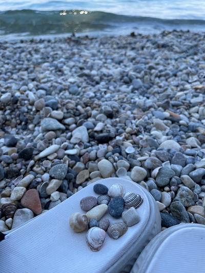 물놀이 사진은 아쉽지만 조약돌과 조개껍데기로 대신하고.