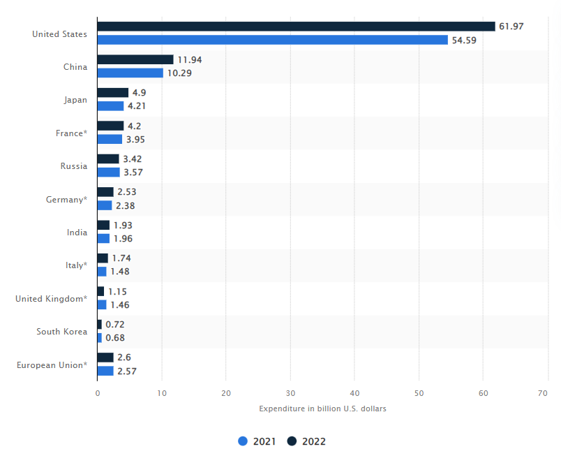 냉전 시기 ‘스푸트니크 쇼크’가 열어젖힌 미-소 간 우주경쟁은 신흥국들과 민간의 참여로 몇 차례 도약의 시기를 맞았다. 냉전이 끝나고 중국이 부상한 뒤 우주경쟁의 2막, 3막이 연이어 펼쳐지는 중이다. 우주로 나아갈 계획을 본격적으로 진행시키고 있는 후속 주자들은 누구일까. 미 중앙정보국(CIA) 월드팩트북은 각국의 우주 프로그램을 취합해 웹사이트에 공개한다. 로켓크루닷컴은 국가 차원 우주 프로그램을 가진 나라들 중에 이탈리아 프랑스, 호주, 브라질, 이란, 이스라엘, 케냐, 우크라이나 그리고 남북한을 꼽았다. 한국은 지난해 누리호 발사를 통해 1톤 이상 나가는 탑재물을 쏘아올릴 수 있는 ‘우주 클럽’의 7번째 국가로 이름을 올렸다. 통계사이트 스태티스타에 따르면 2021-2022년 우주예산을 많이 쓴 나라는 미·중·일·러·프랑스·독일에 이어 인도, 이탈리아, 영국, 한국 순이었다.