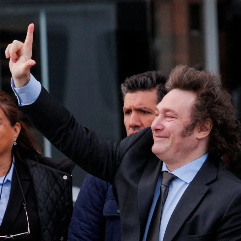 Argentine President Javier Milei gestures to supporters in Rio Gallegos, Argentina, on Friday. The right-wing libertarian won the country’s presidency in November. Photo: Reuters