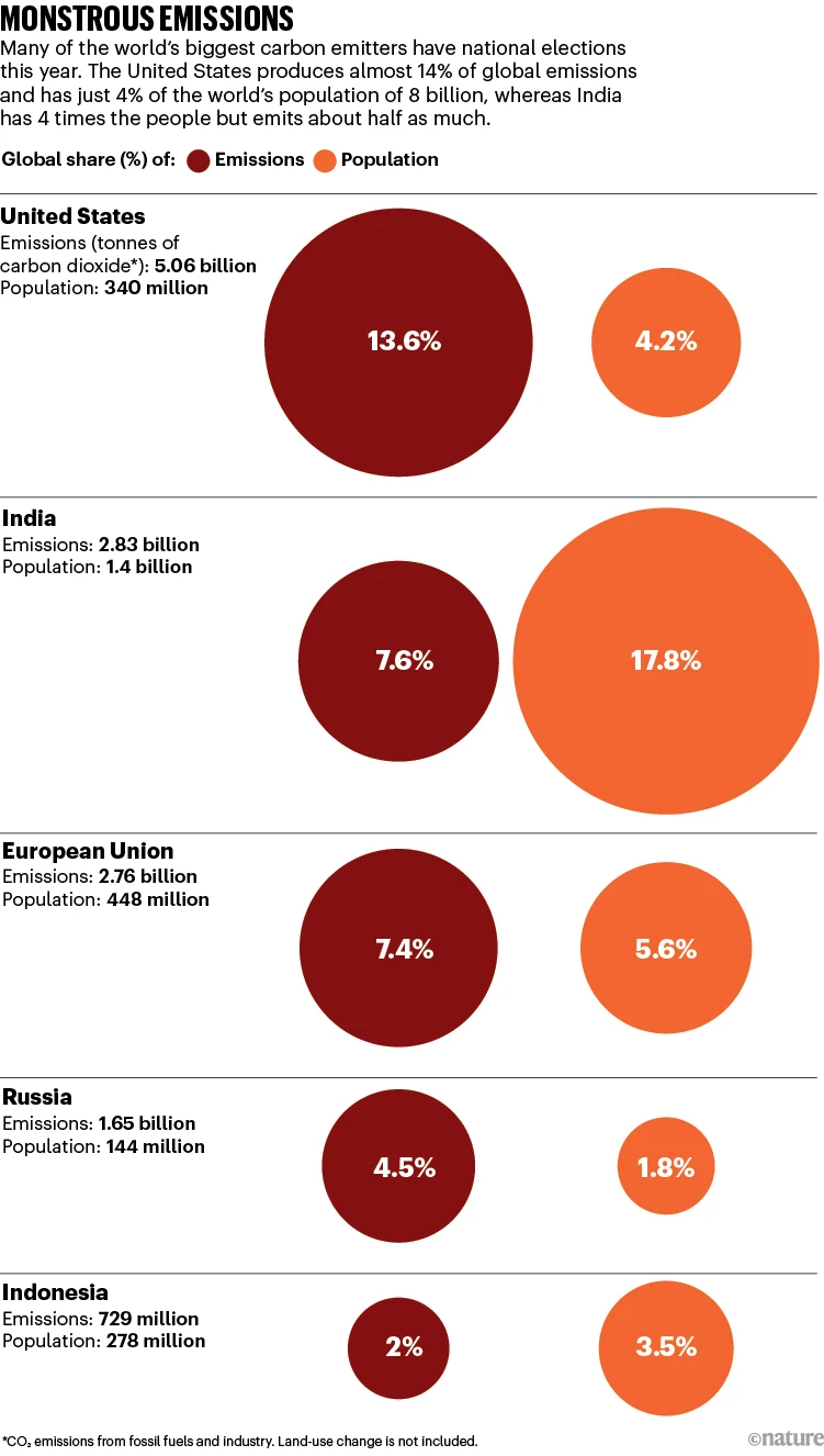 잠시 생각의 방향을 돌려보자. 미국에선 트럼프 당선 가능성이 거론되고, 인도는 경제 키우기에 여념이 없고, 러시아에서는 푸틴 지지가 여전하고, 유럽에서는 극우파가 목청을 돋우고 있는 2024년의 세계. ‘선거 민주주의’는 기후변화에 좋은 것일까, 나쁜 것일까?