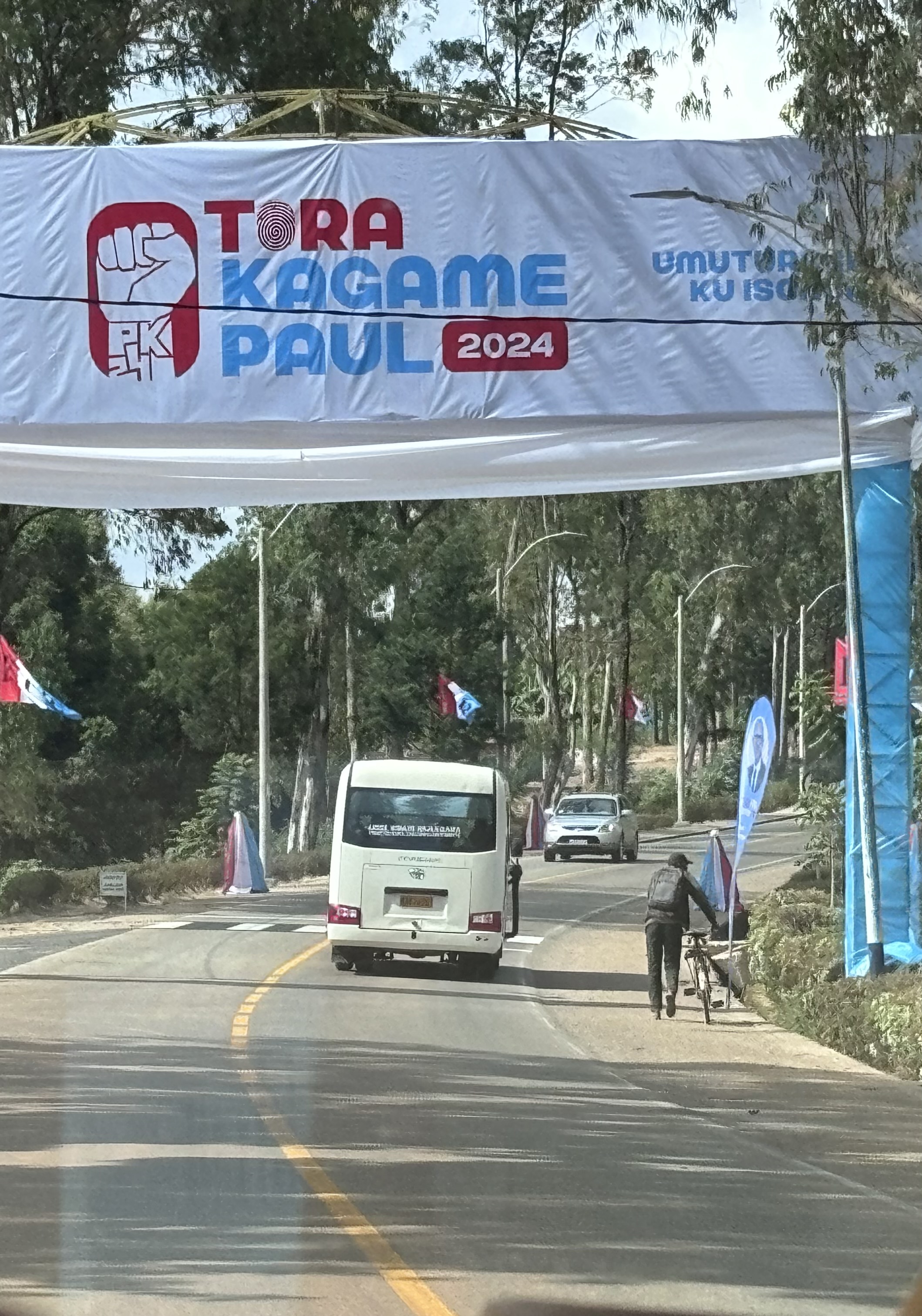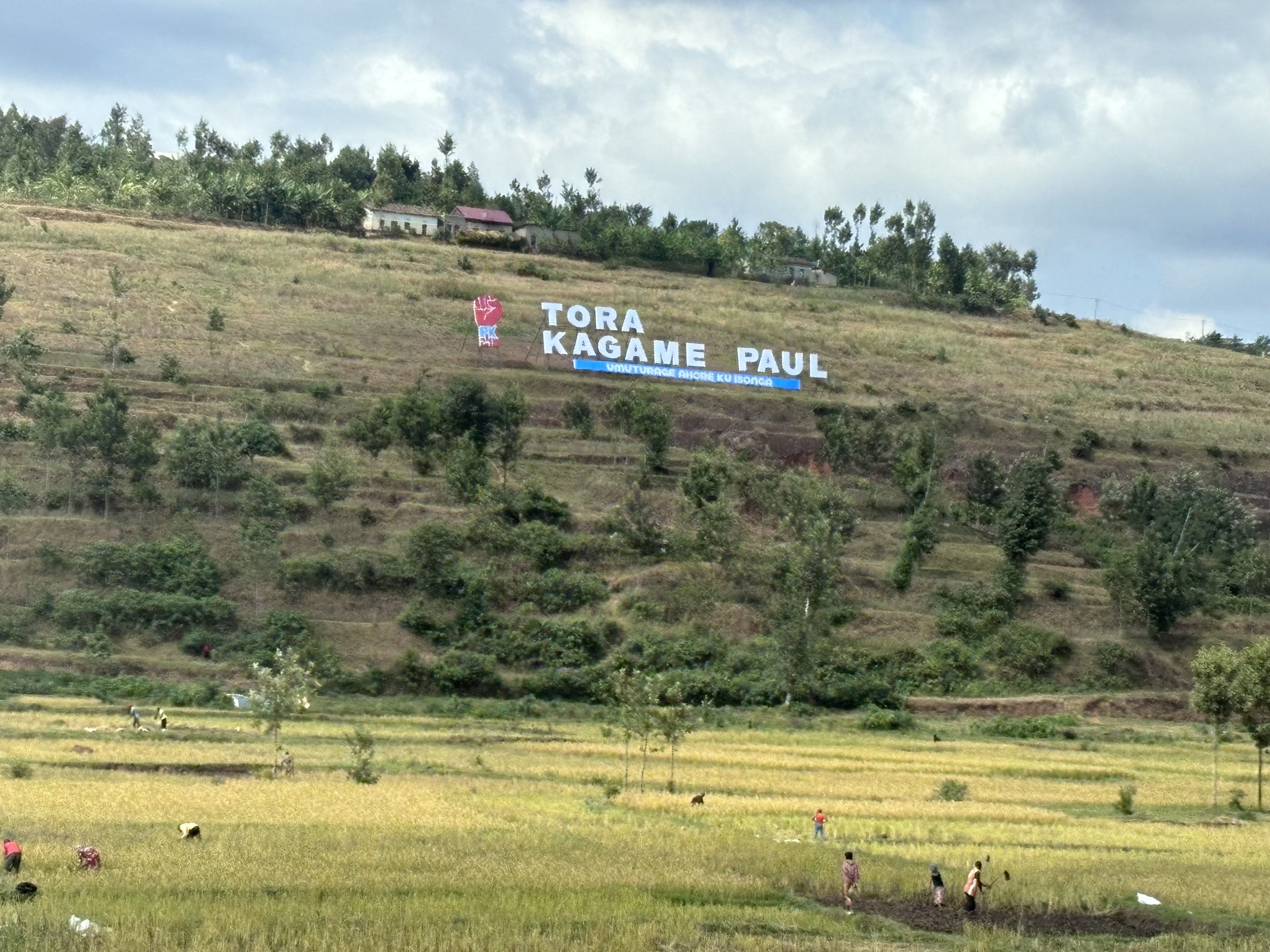 대통령이 된 것은 2000년이지만 애국전선 사령관으로서 내전을 진압한 이후 국방장관과 부통령을 지내던 동안에도 실질적인 권력자였으니 사실상 30년 통치다. 때마침 7월 15일은 대통령 선거일이었고 곳곳에서 애국전선의 표시들을 볼 수 있었다. 특이하게도 슬로건이나 텍스트는 없이 정당 색깔인 하늘색과 빨간색과 흰색으로 구성된 깃발이나 현수막만 눈에 띄었다. 키갈리에서 북쪽으로 올라가던 중에 선거 유세 집회를 봤다. 동원된 군중들, 똑같은 티셔츠. 한 줌의 야당 지지자들도 봤지만 얼핏 봐서는 며칠 뒤 대선이 있다는 걸 알 수도 없을 정도로 선거 분위기는 없었다. 당연히 카가메는 당선됐다. 98.2%의 투표율, 99.2%의 득표율로 4선에 성공했다.