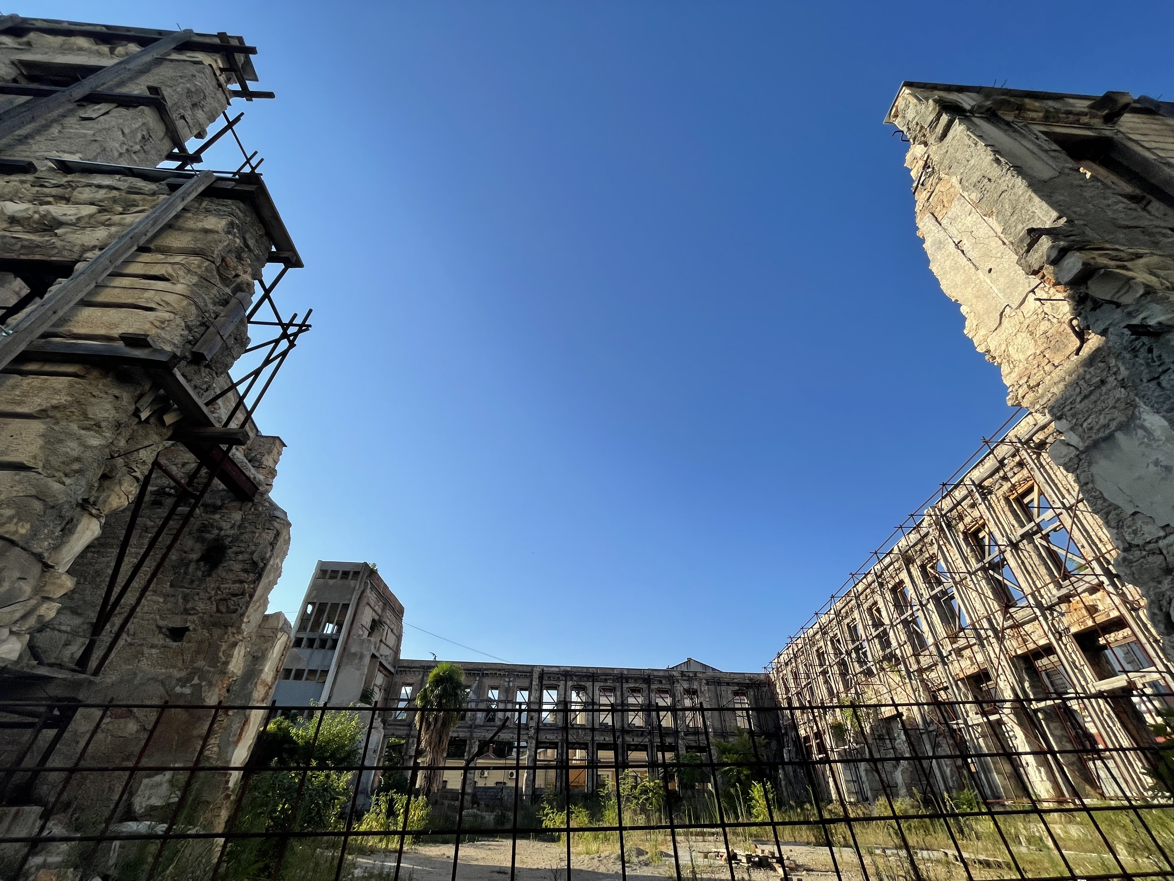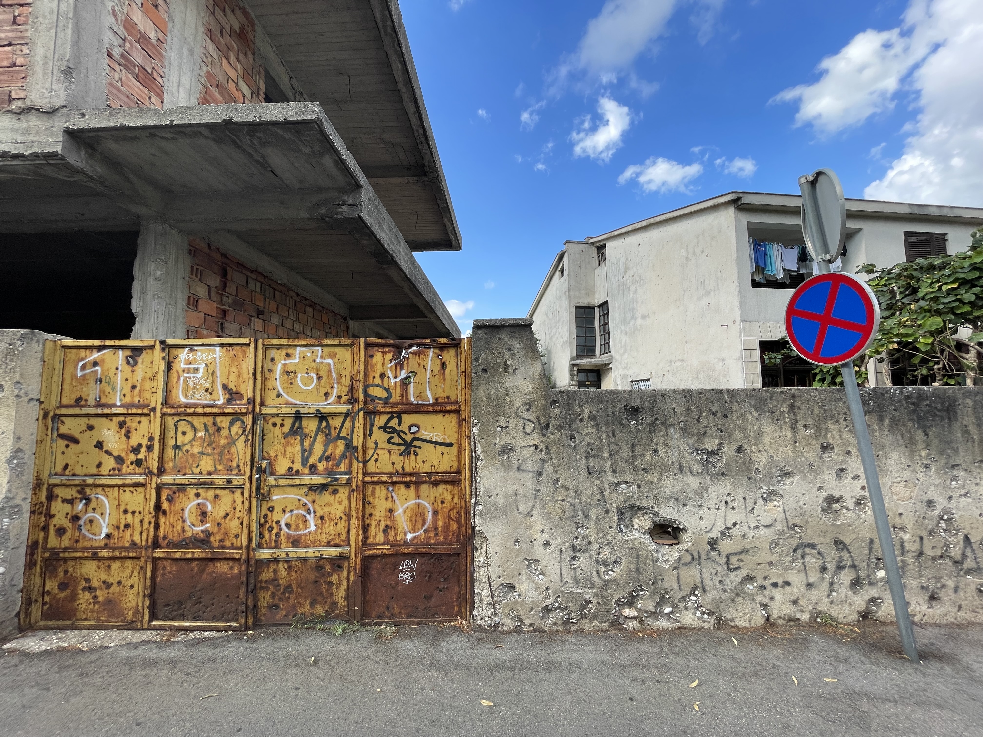 모스타르에서도 도처에 총탄 자국.