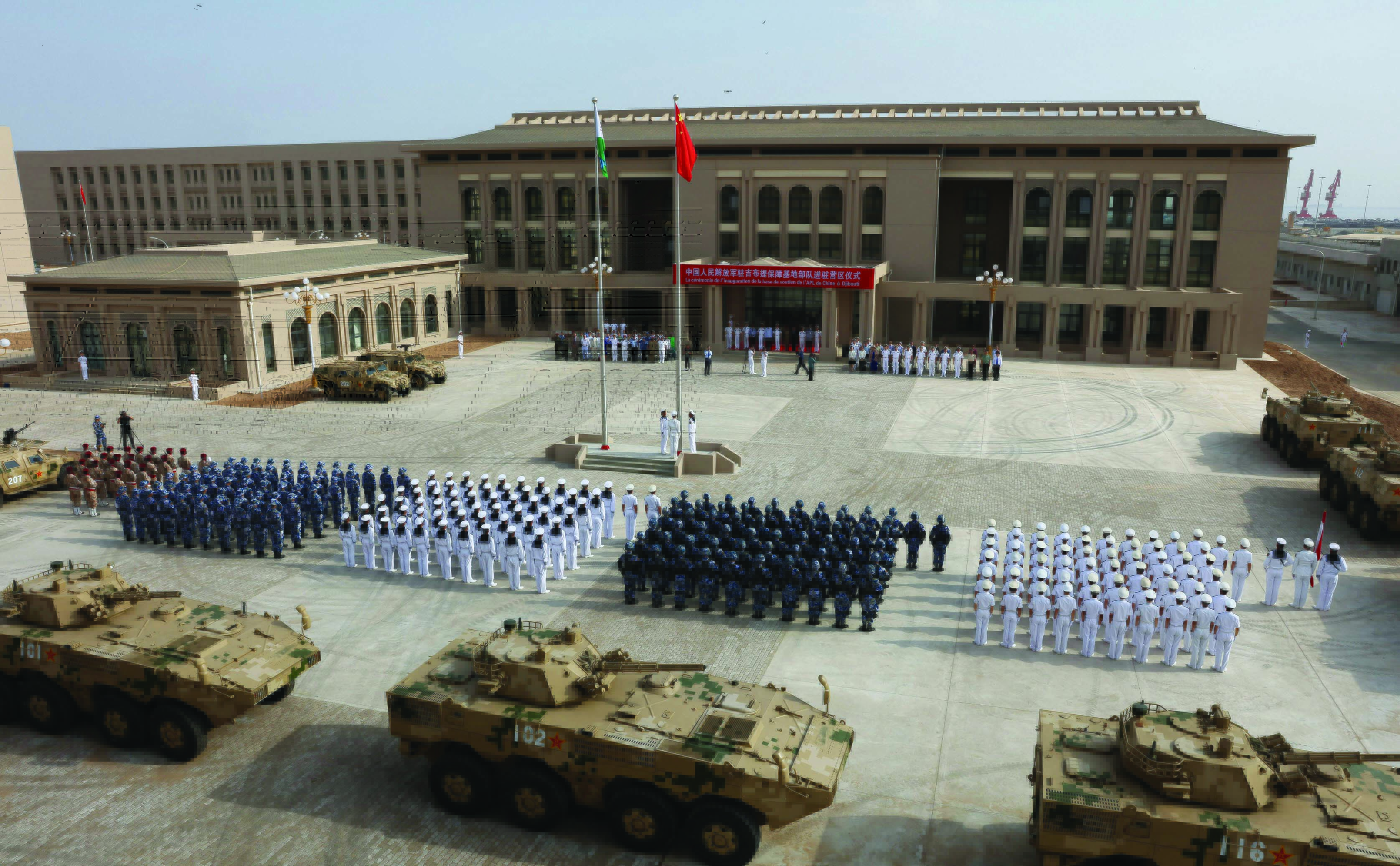 그런데 수도(수도 이름도 ‘지부티’다)의 도랄레 항구 부근, 르모니에에서 자동차로 15분 거리에 중국이 2017년 인민해방군 기지를 만들었다. 이 나라 해상 물동량의 거의 전부가 이 항구를 이용하는데 거기에 중국이 첫 해외기지를 만든 것이다. 당시 중국 측은 이 기지를 발판 삼아 “인도적 지원과 해상안전 강화라는 국제적 의무”를 다할 것이라고 했지만 미국은 예민한 반응을 보였다. 특히 중국은 미국처럼 땅을 차지하고 병력을 보내는 것에 그치지 않았고 돈과 기술자들을 보내서 원조하는 모양새를 취했다. 미국은 중국이 쓰고 있는 시설이 해군기지이며 항공모함도 들어갈 수 있다고 주장한다. 중국은 “해군 보급용 항만시설일 뿐”이라고 말하지만 실제로 인민해방군 지원병력 1000명 정도가 주둔 중으로 알려졌다.
