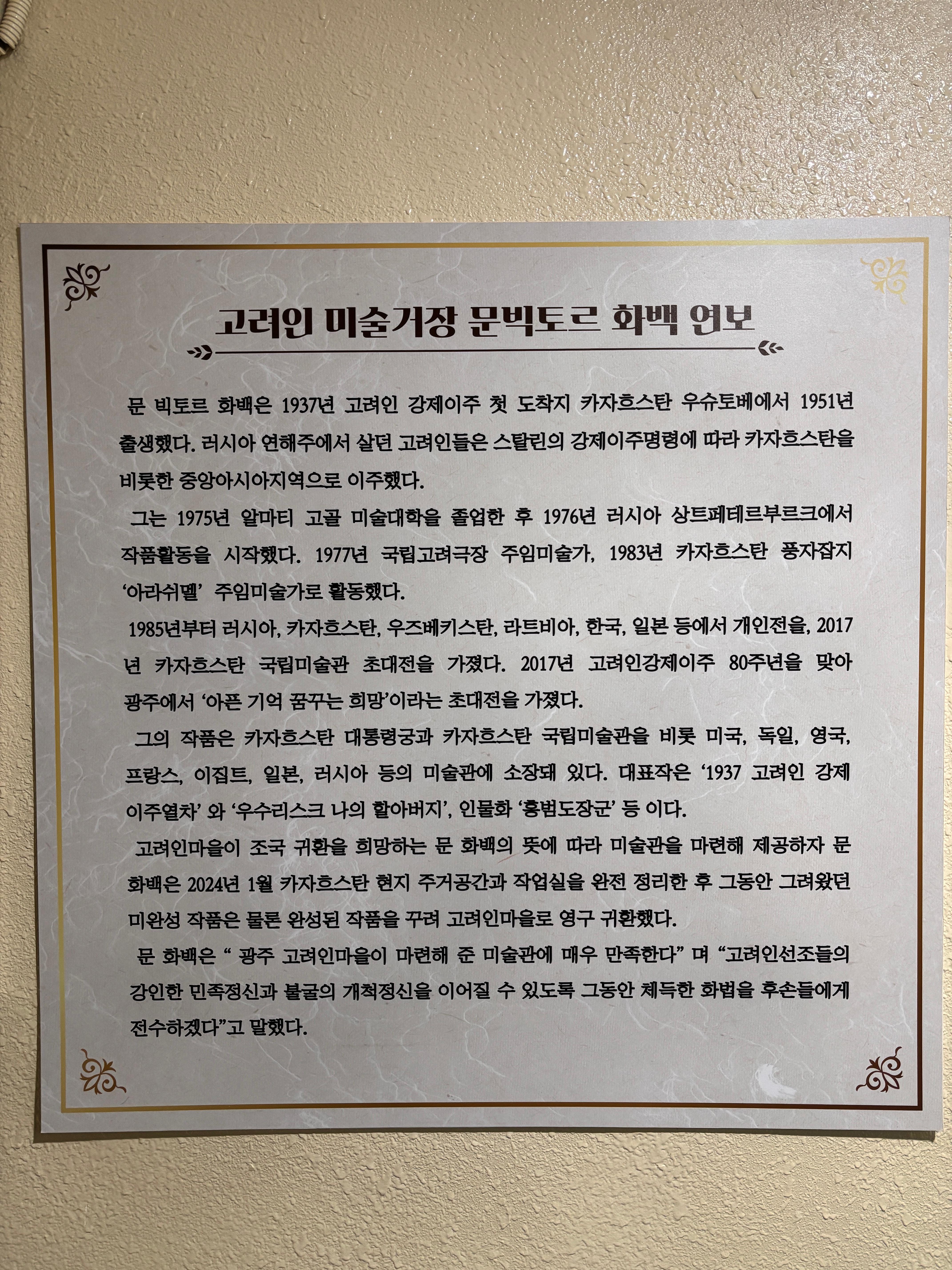고려인마을 문화관에서 빅토르 문이라는 카자르스탄 고려인 화가의 작품을 봤습니다.