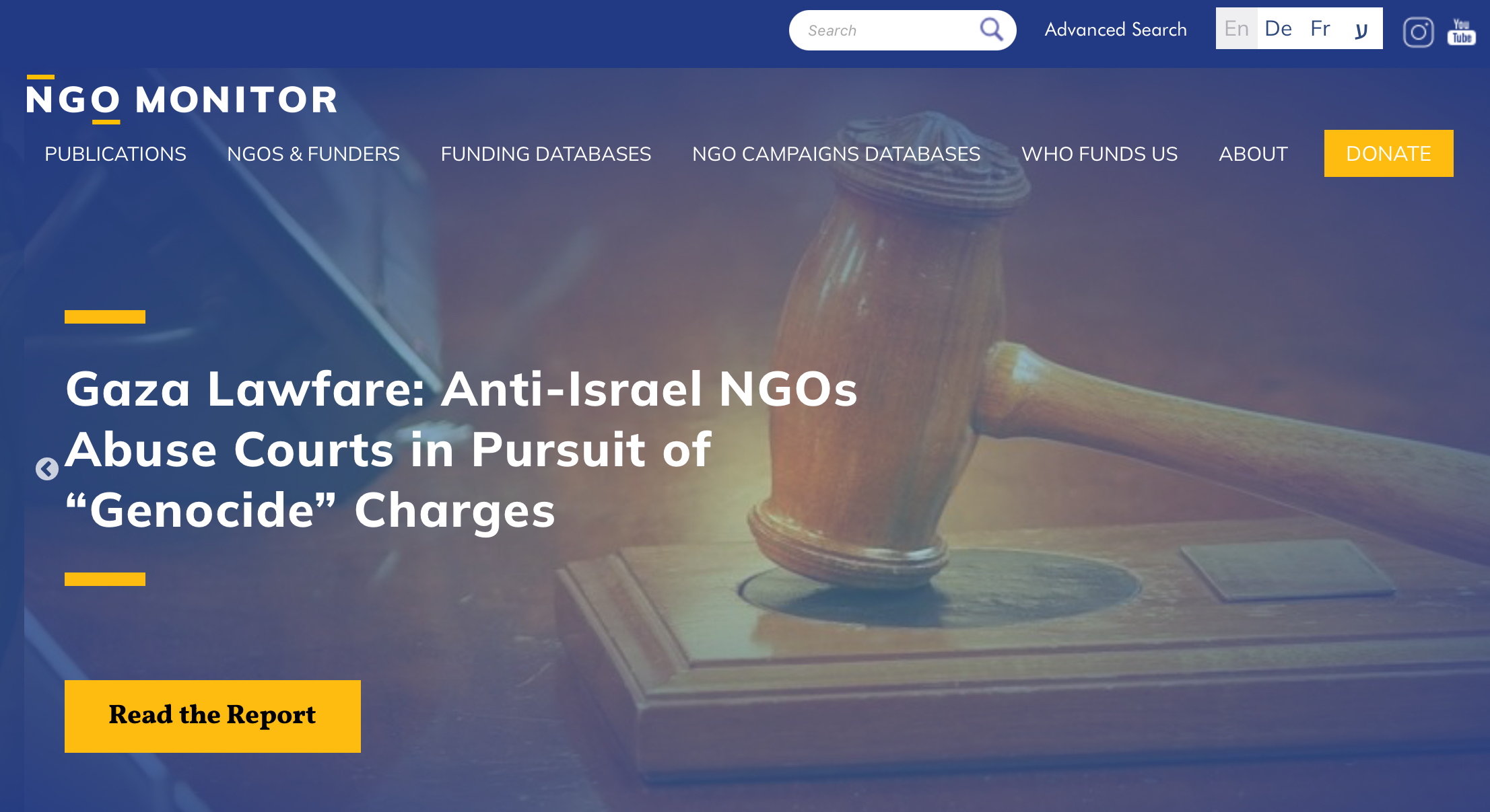 위키피디아 설명은 다르다. “NGO모니터는 예루살렘에 본부를 둔 우익 단체로서 친이스라엘 관점에서 국제기구 활동을 감시한다. 법적으로 요구되는 자금 출처도 공개하지 않고 있지만 미국 세무 자료를 통해 미국 유대인위원회와 여러 유대인 기금의 후원을 받고 있음이 드러났다.” 이 단체는 팔레스타인 탄압이 인종차별로 분류될까봐 미국 포드 재단이 인종차별 반대 캠페인을 지원한 것조차 비판했고, 평화단체 브첼렘(B’Tselem) 같은 이스라엘 내 시민단체들을 비난했다가 명예훼손 소송에서 패한 적도 있다.