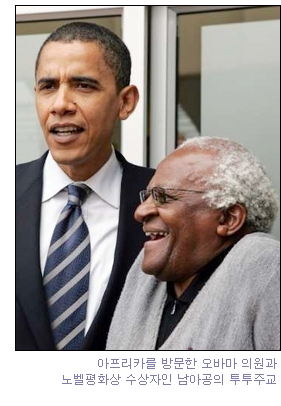 오바마 의원은 21일 남아공 의회 연설에 앞서 넬슨 만델라 대통령이 복역했던 로벤섬 감옥 등을 둘러본 뒤 “아프리카가 그동안에는 미국 외교정책에서 의붓자식 취급을 받아왔지만 앞으로는 그렇지 않을 것”이라며 미국이 아프리카 외교를 강화하게 될 것이라고 말했다. 그는 남아공 에이즈퇴치 시민단체 지도자들을 만난 뒤 아버지의 고국인 케냐와 콩고, 인도양 연안 소국 지부티 등을 둘러보게 된다.