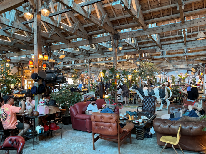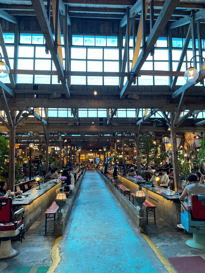 넓은 공장의 중앙통로에 저렇게 좌석을 배치. 일종의 메인홀이고, 옆에 딸린 공간들과 별관에도 좌석이 매우 많습니다.